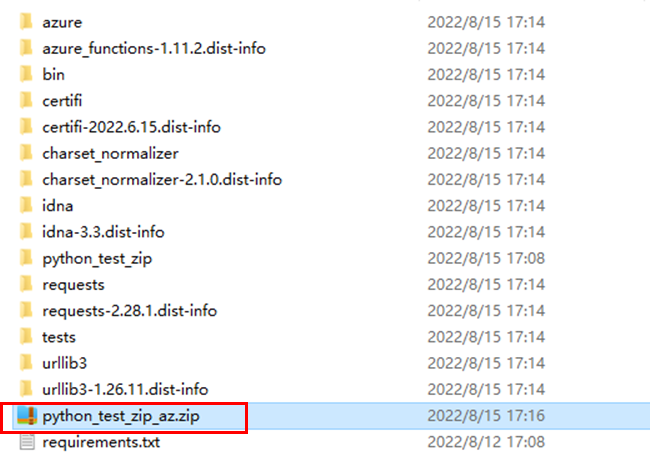 Azure Function上での事前準備が出来たら、ローカルにてデプロイしたいPythonソースコードの準備をします。Linuxモードでは、アプリコンテンツのダウンロードはサポートされていないので、python_test_zip_azという名前のローカルプロジェクトフォルダを、host.jsonなしで直接作成します。