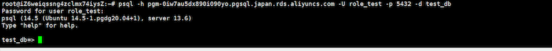 psql -h pgm-0iw7au5dx890i090yo.pgsql.japan.rds.aliyuncs.com -U role_test -p 5432 -d test_db