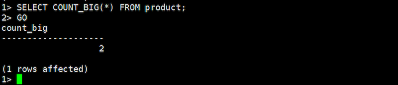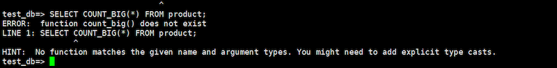 一方、PostgreSQLにはなく、SQL ServerにはCount関数では処理しきれない大きなレコード件数を返却できるCOUNT_BIG関数がありますので、試しにこのコマンドを使って確認します。