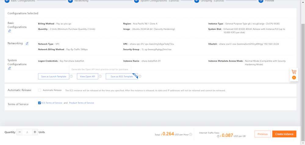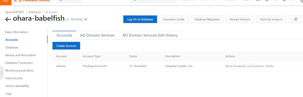 Babelfish機能を有効化しつつ、あとは往来通りにApsaraDB for PostgreSQLインスタンスを作成します。SingleやHA構成、Zone、低スペック、どんな構成でもBabelfish機能が付帯されてるApsaraDB for PostgreSQLが無事作成されます。