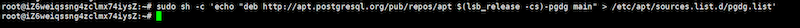 # sudo sh -c 'echo "deb http://apt.postgresql.org/pub/repos/apt $(lsb_release -cs)-pgdg main" > /etc/apt/sources.list.d/pgdg.list'