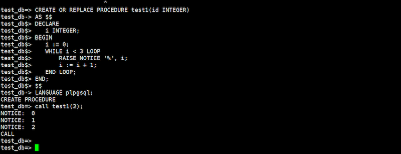 CREATE OR REPLACE PROCEDURE test1(id INTEGER)