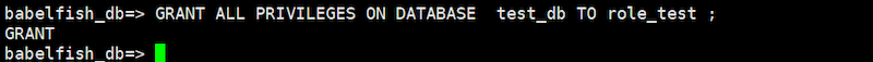 GRANT ALL PRIVILEGES ON DATABASE test_db TO role_test ;