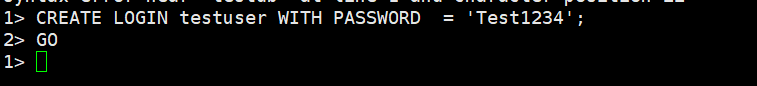 CREATE LOGIN testuser WITH PASSWORD = 'Test1234';
