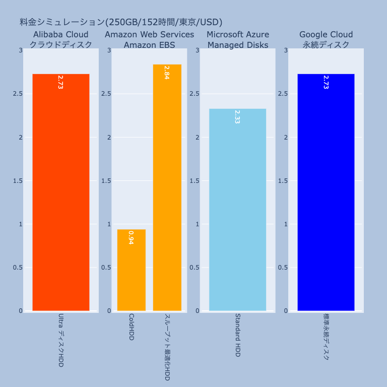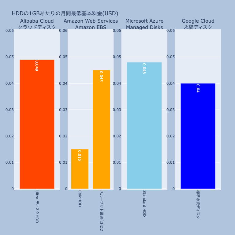 ディスクを1ヵ月間確保した場合の、1ギガバイトあたりの最低基本料金について調べてみました。
