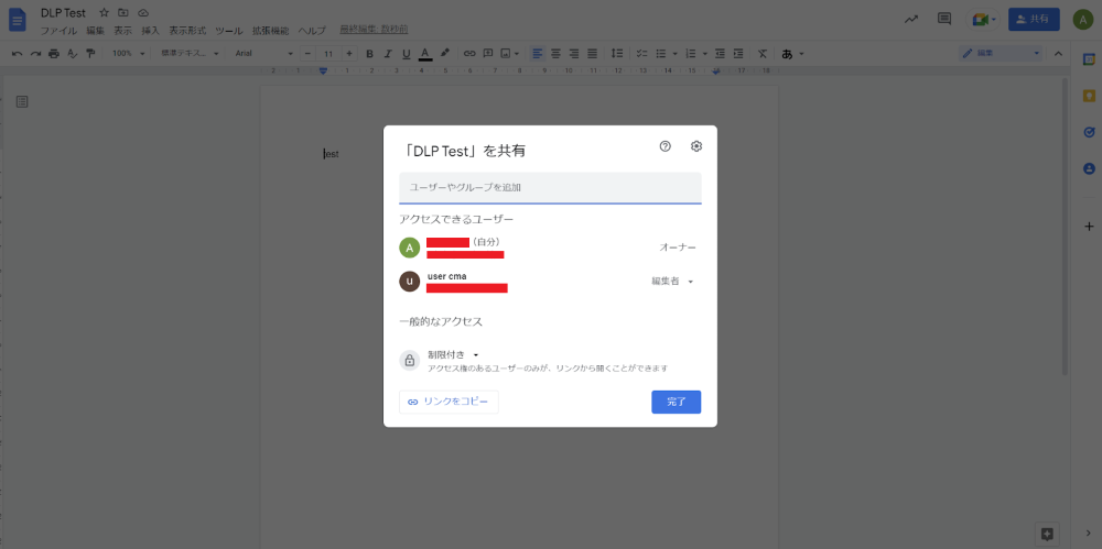 マーケティング部以外の人は社外の許可リスト登録済みドメインとファイルを共有できます。(ルール1、2が同時に適用されますが、操作は同じ)