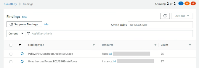 1行目はRootアカウントでのコンソールログインを、2行目はEC2へSSHのブルートフォースを検知した場合です。