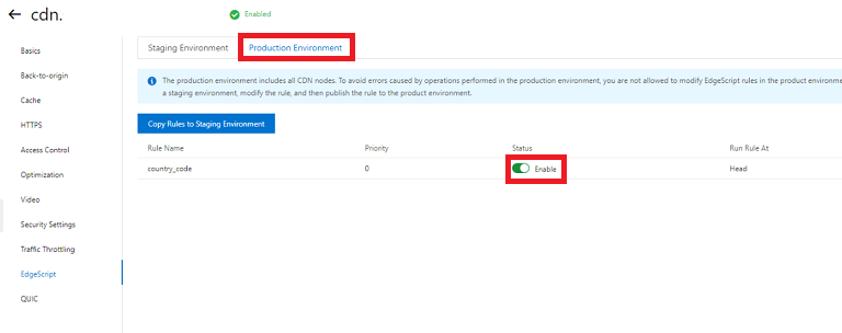 2.Domain Names > 設定するドメインを選択 > EdgeScript > Staging Environment > Add Rule をクリック