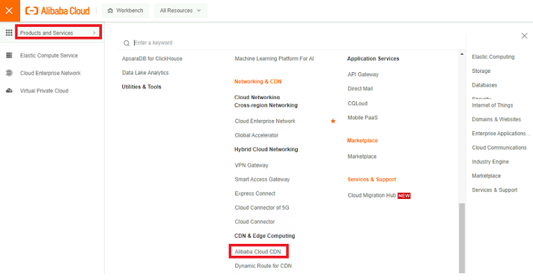 1.Alibaba CloudコンソールよりAlibaba Cloud CDNメニューをクリック
