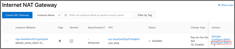Alibaba Cloudは「NAT Gateway」というプロダクト名でNAT機能が提供されています。