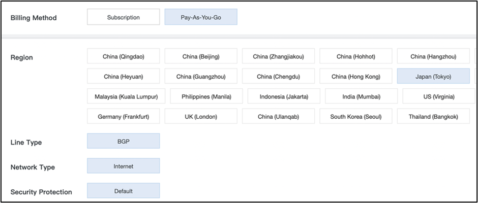・Elastic Compute Service (ECS) / 東京リージョン