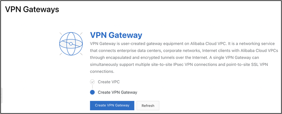 ② 表示された画面で「Create VPN Gateway」をクリックします。