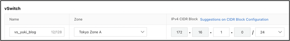 VSwitch :で作成したVPCを選択