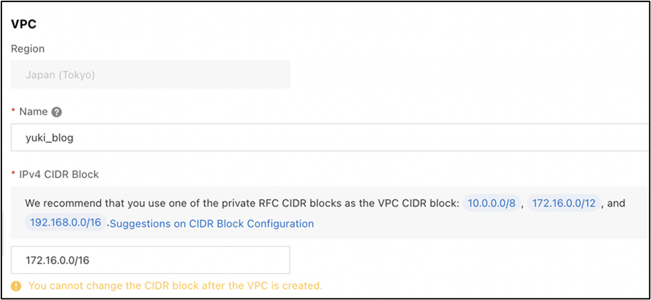 IPv4 CIDR Block : 172.16.0.0/16