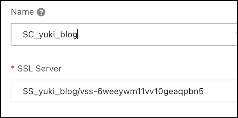 SSL Server : 作成したSSL Serverを指定します