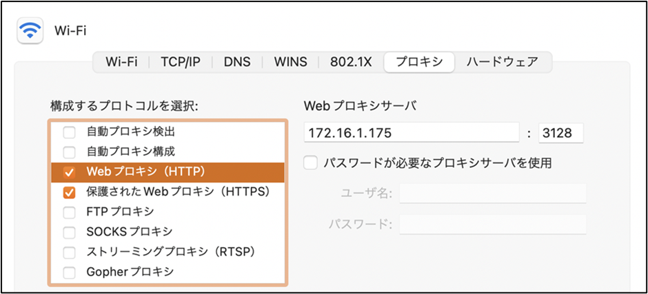 ・プロキシサーバを指定