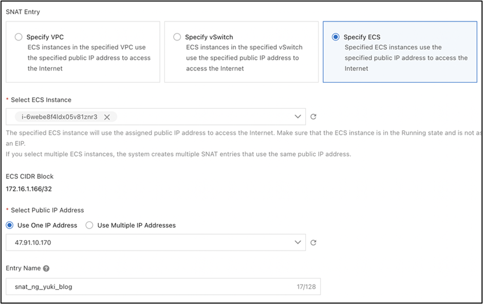 SNAT Entry : Specify ECS