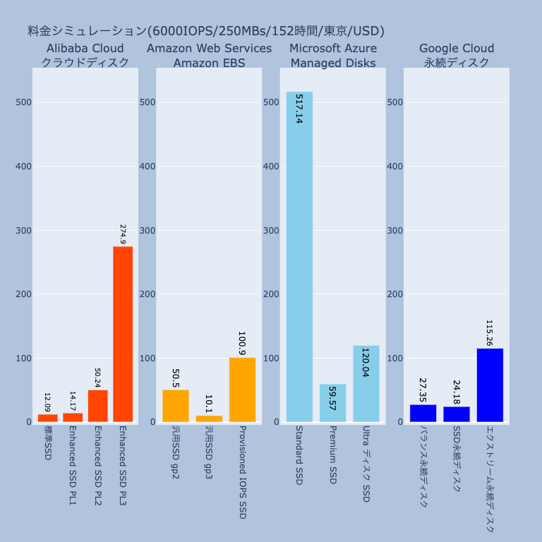 | Google Cloud | バランス永続ディスク | ✔︎ | ー | ー | 秒 |