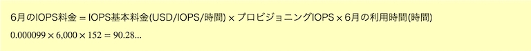 今回は最も高額になる例として、常にIOPSが上限に達していた場合を想定してみます。(E80の場合、プロビジョニングIOPSは6,000です)