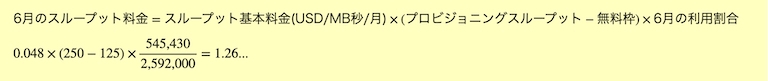 さらに、スループットの料金は約1.26ドルとなりました。計算式は以下になります。