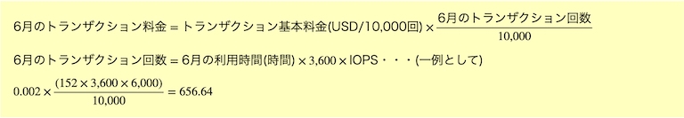 今回のシナリオのトランザクション回数の料金は約656.64ドルとなります。計算式は以下の通りです。