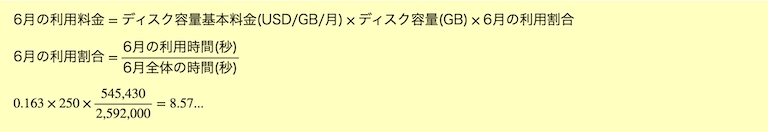 まず、ディスク容量の料金は約8.57ドルとなりました。計算式は以下になります。