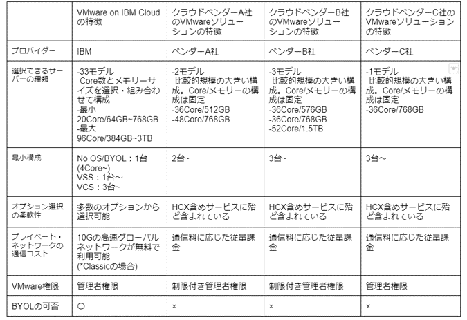 ⑤他のクラウドサービスで提供されているVMwareソリューションとの簡易比較