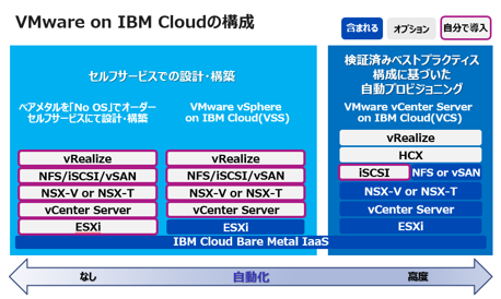 ③検証済みベストプラクティス構成に基づいて自動プロビジョニングで提供されるVMware vCenter Server on IBM Cloud(VCS)