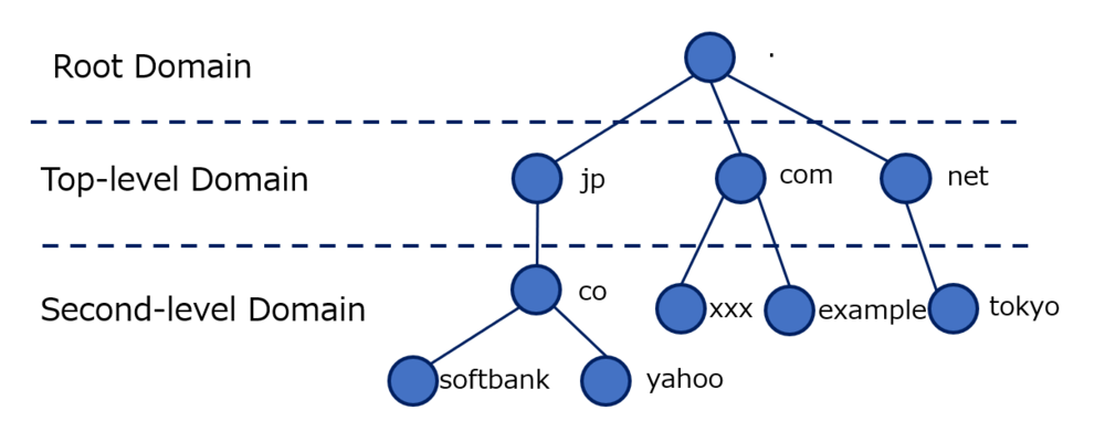 DNSはRoot DomainをTop、Top-level DomainsやSecond-level domains、TreeによるFQDN(Fully Qualified Domain Names)を形成しながら、インターネット上でツリー状による階層構造で形成されています。Root Domainは「.」で表され、実際にはDomain nameで構成されています。現在、Root Domainを司るルートサーバは全世界で13台しかなく、そのうち1台は日本にも配置されています。