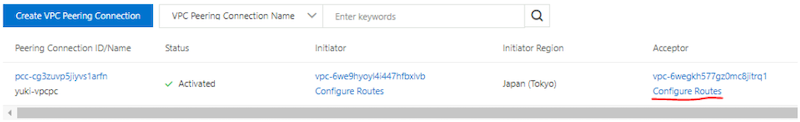 VPC Peering Connectionは2 つのVPC間を接続するプライベート ネットワーク接続サービスです。機能としては、Alibaba Cloudの異なるVPC同士を接続することができ、なおかつ異なるアカウントのVPCやリージョン同士も接続することができます。(同一アカウント、リージョンのVPC同士も接続することが可能です)