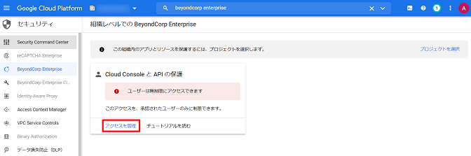 1. 組織を選択した状態で[BeyondCorp Enterprise]にアクセス