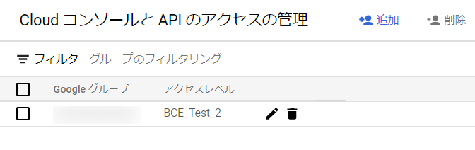 3. [追加]をクリックし、対象のGoogleグループと先ほど作成したアクセスレベルを選択