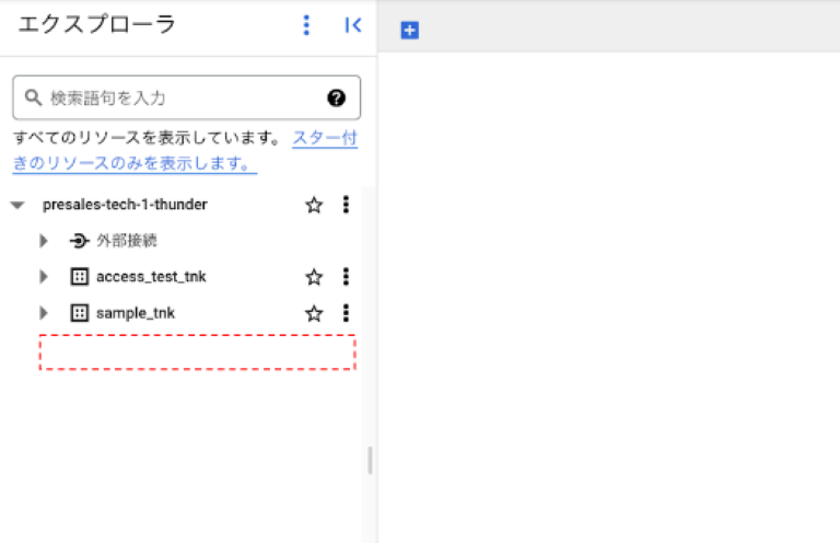 リソース一覧にデータセットとテーブルが表示されなくなり、削除されたことが分かります。