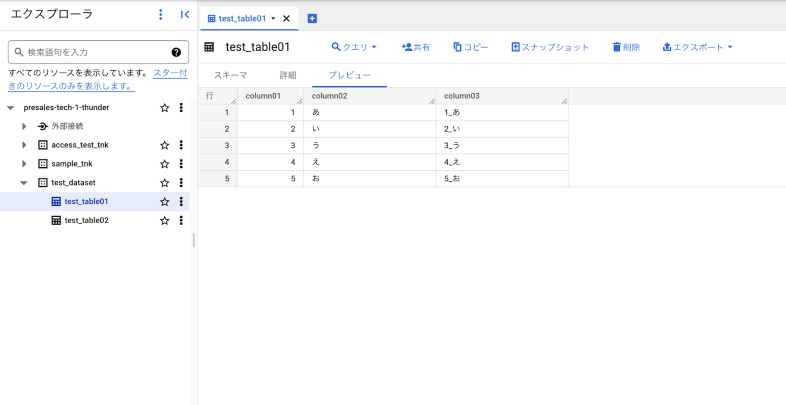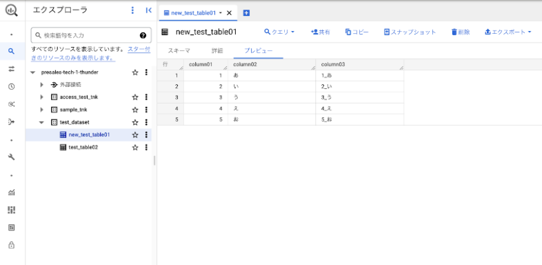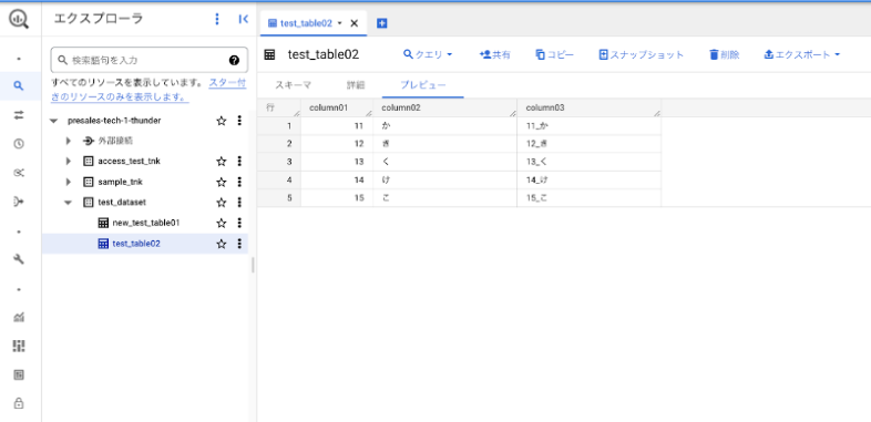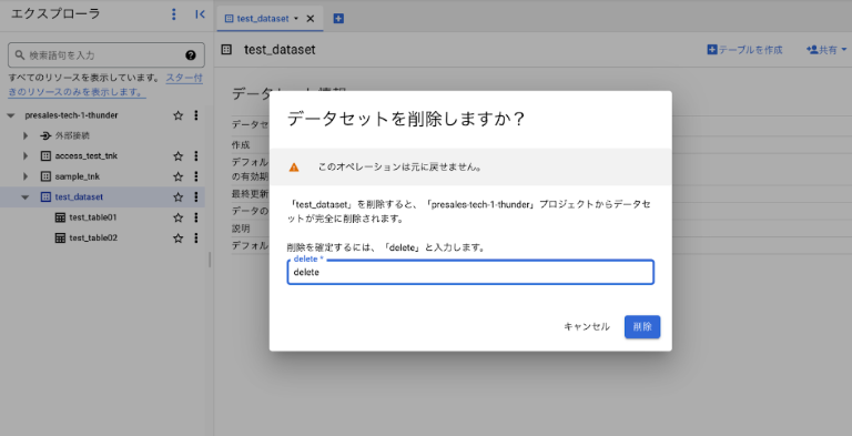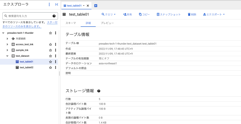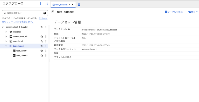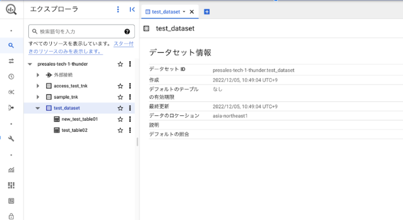 test_dataset ※リージョンは asia-northeast1