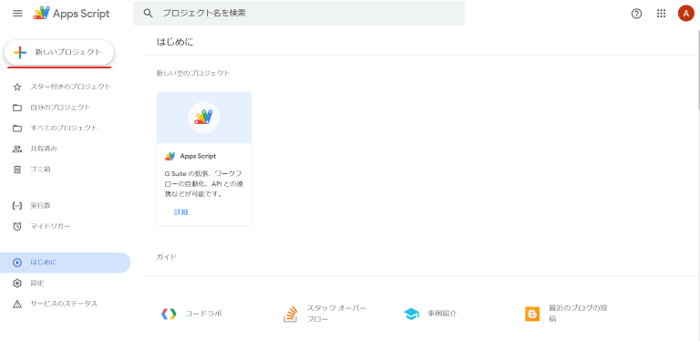 Step 1. GASのWebサイトを開き(Google Accountは必要)、新しいプロジェクトを作成します。