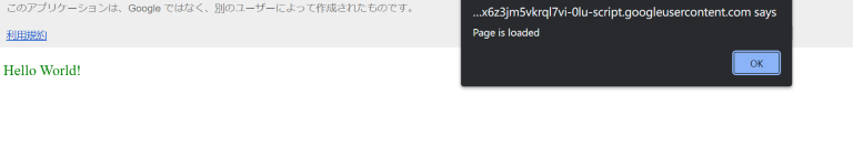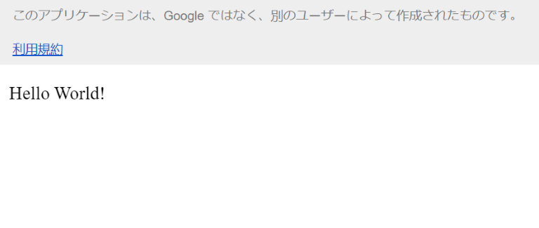 実際にURL (https://script.google.com/maros/...) をクリックすると、公開された「Hello World!」のページを見ることができます。