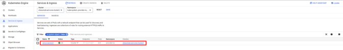 また、GKEクラスタにacms-<ASKクラスタのサービス名>という名前でサービスが作成されます。この場合、サービス名は「acms-service1」です。