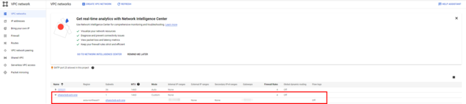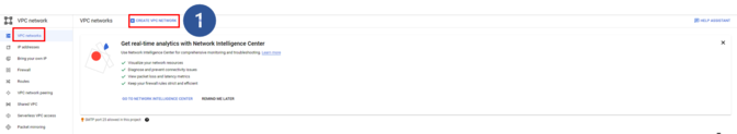 Goocle Cloudプラットフォームの「VPC Network」コンソールに移動し、サブネットを持つ新しいVPCを作成します。