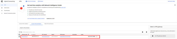 Goocle CloudのVPNコンソールに移動し、さらに使用するためのVPN接続を作成します。