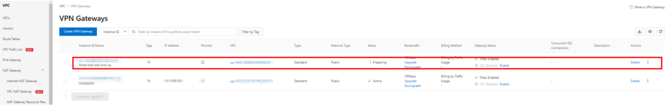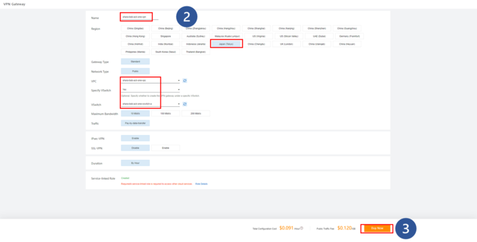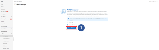 外部IPアドレスを生成するために、Alibaba CloudにVPN Gatewayを作成します。