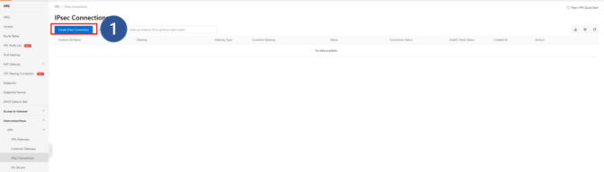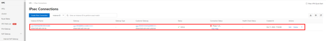 次はAlibaba CloudでIPsec接続を構築します。Alibaba CloudのVPCコンソールから処理します。