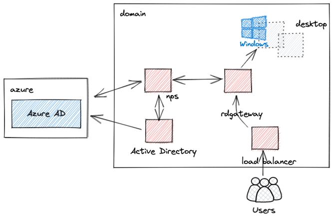 上記はよくあるRD Gatewayを踏み台にしたソリューションですが、ではAzure ADと連携させ、MFAを実現する構成を見ていきましょう。