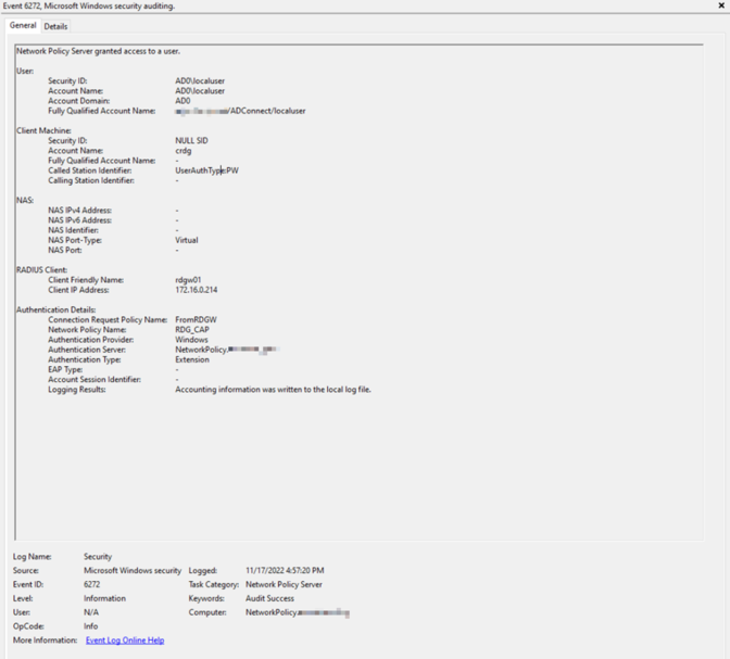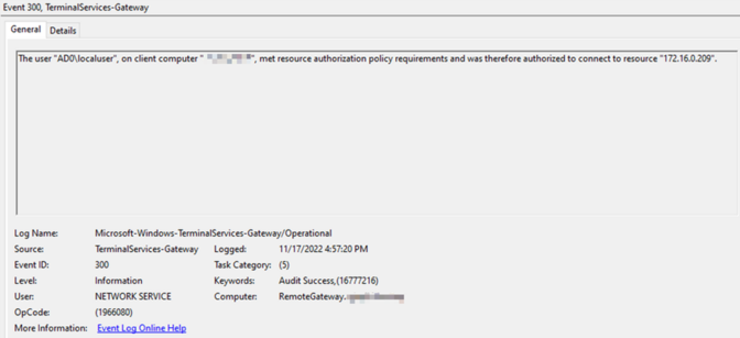 RDGateway RAPポリシー認証イベント: