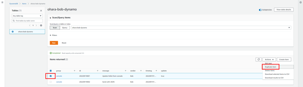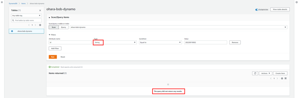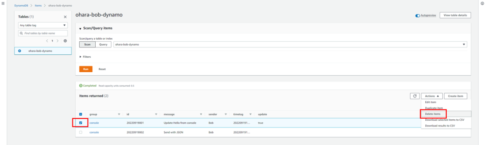 aws dynamodb scan --table-name ohara-bob-dynamo