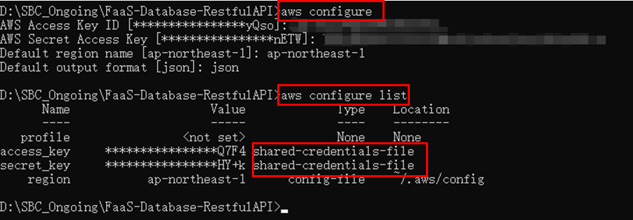 もし、共有認証情報ファイルをどのように準備し、配置すればよいかわからない場合は、`aws configure`コマンドを使用して生成することができます。