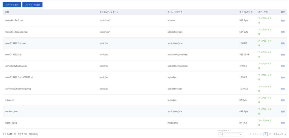 また、フロントエンドのエンドポイントはバケットの概要欄から確認することができますので、「インターネットアクセス」のバケットドメイン名をブラウザに入力していただくと、アプリケーションにアクセスできます。