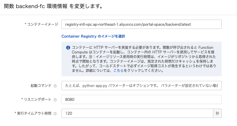 次にACRにプッシュしたイメージをFunction Computeにデプロイしていきます。手順は下記の通りです。