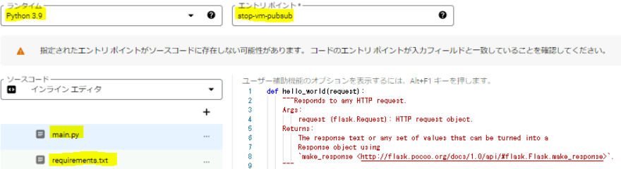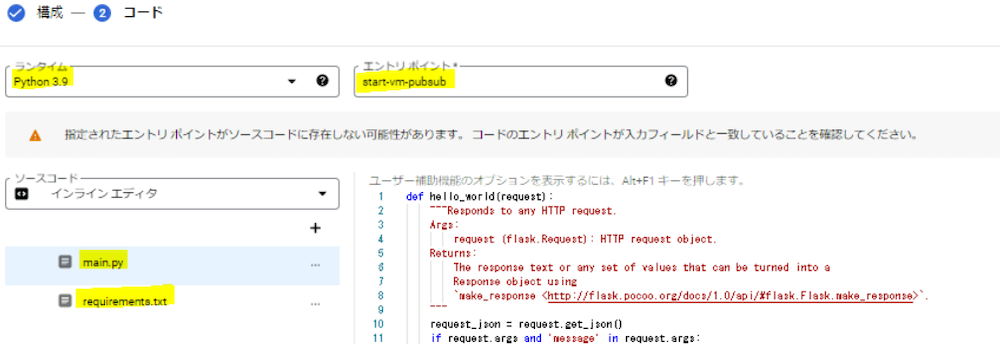 main.py / requirements.txtにcodeの設定が完了したら「デプロイ」をクリックし、関数を作成します。