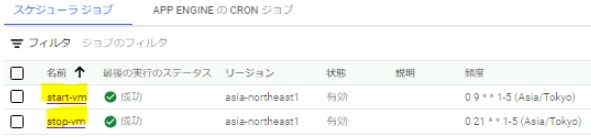 4-4 ) Cloud Schedulerを開き、作成した「start-vm」を強制実行します。