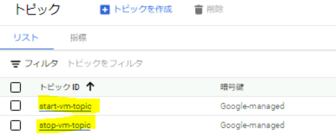 Cloud Oub/Subトピック : 1-3で作成したstop-vm-topicを指定